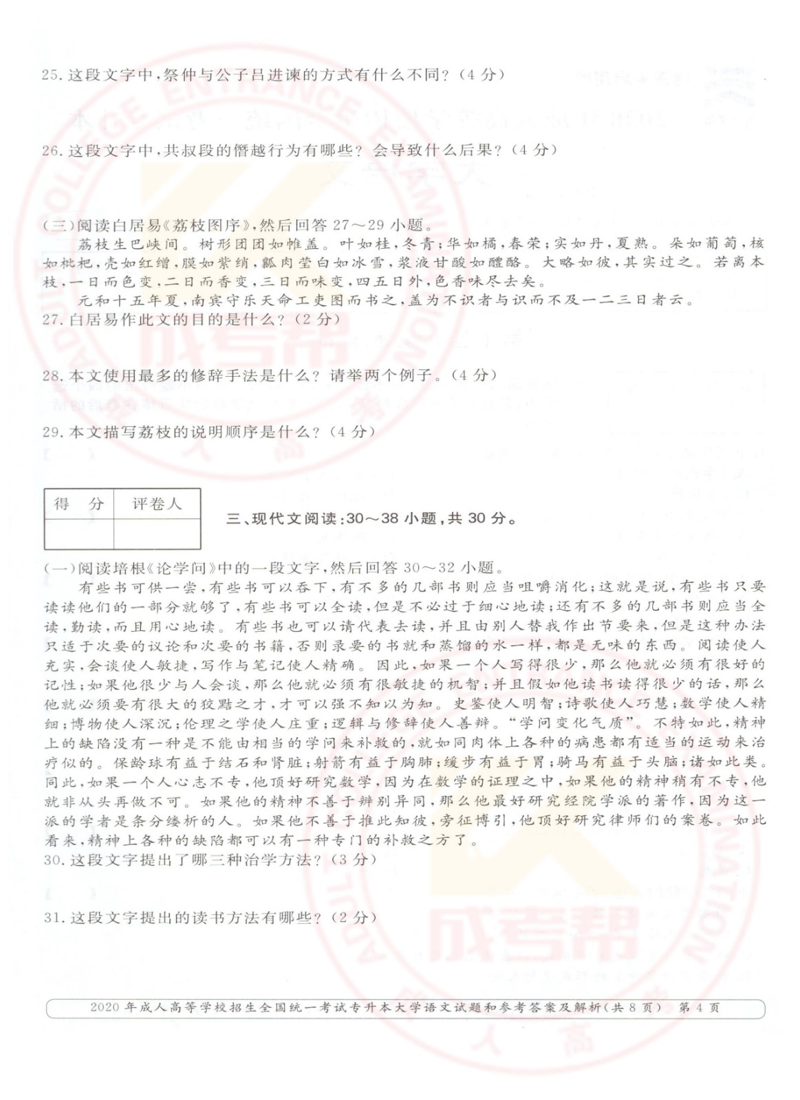 2020年杭州成考专升本大学语文考试真题及答案