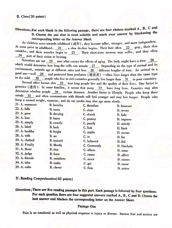 2021年杭州成考专升本英语考试真题及答案
